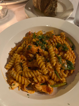 I think Brad and I would both agree that this restaurant – CLEARLY a hidden gem – was one of the highlights of the entire trip. We happened (sheer luck) to get the best seat in the tiny, quaint restaurant – on a platform, right next to the window, looking out to the patio and the Chicago streets. The table came with fresh bread and olive oil. I got a blackberry martini, and Brad got an apple cider old fashioned. For our meal, I got fusilli pollo, and Brad got veal marsala … both were INCREDIBLE (the pictures do not do it justice). Brad said, “I never want to eat anything else as long as I live.” We shared house made tiramisu for dessert (which means I just took a bite, because I don't really care for desserts).